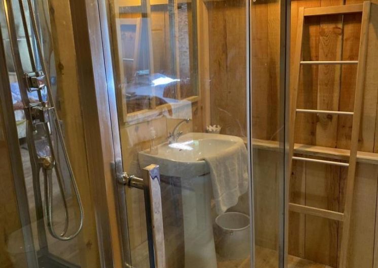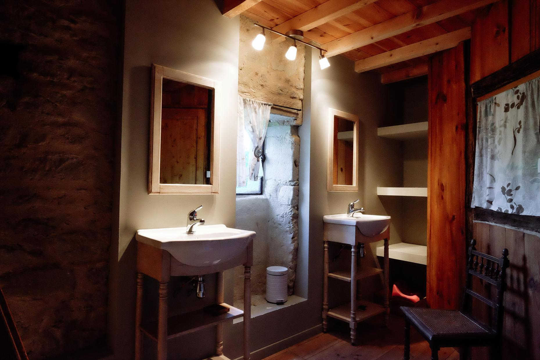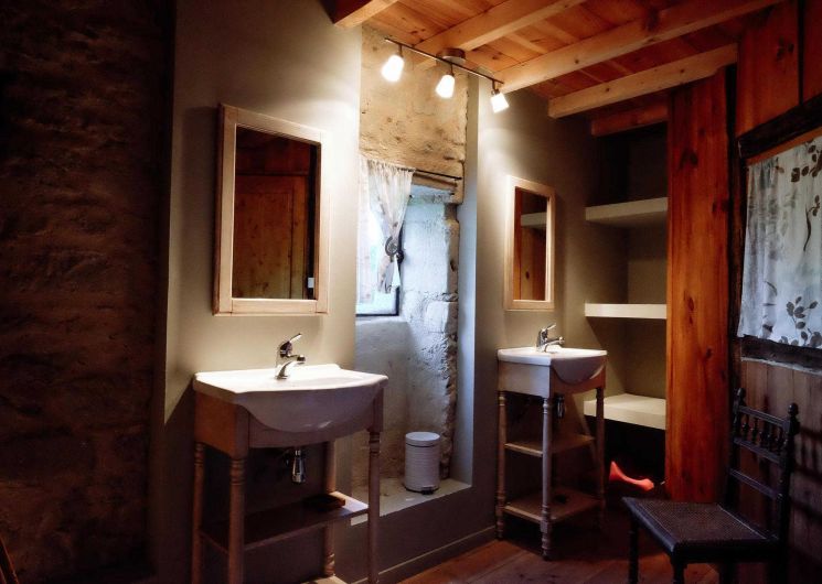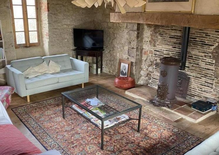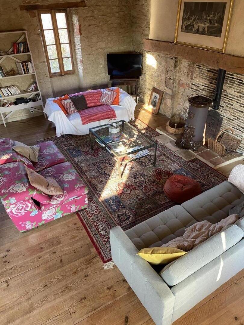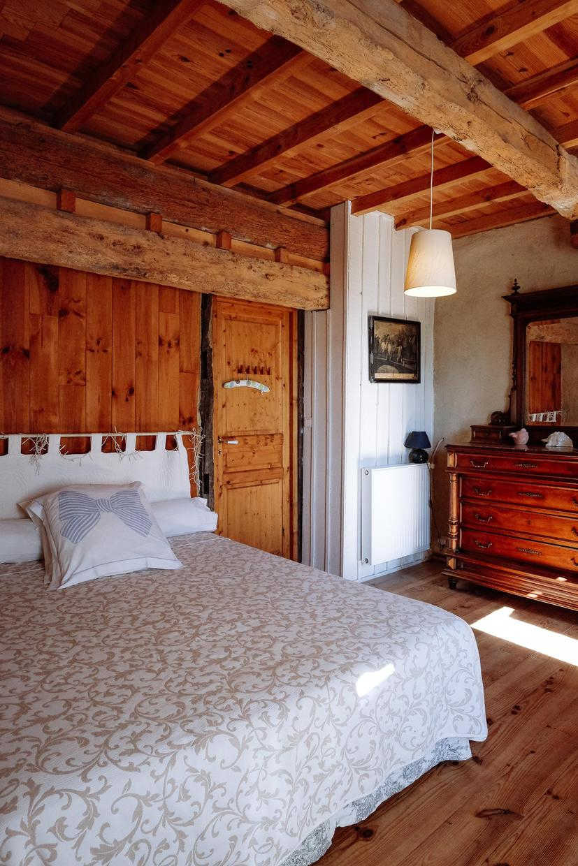 – Rez-de-chaussée : entrée, cuisine (grande table familiale), salle à manger, cellier/buanderie, séjour chauffé par un poêle à bois avec coin petit-déjeuner/boissons chaudes, WC.
