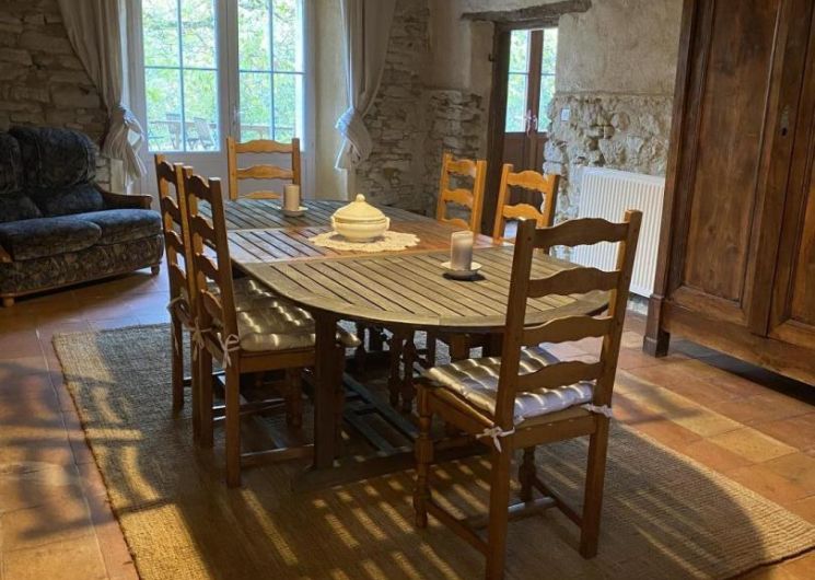 Chauffage central au fuel (sauf dortoir équipé d’un chauffage électrique). Téléphone illimité sur fixes Europe. Possibilité de location partielle du gîte sur demande. Animaux admis sous conditions : refusés à l’étage (canapés blancs) et dans la partie clôturée de la piscine.