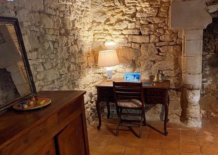 TELETRAVAIL : mise à disposition d’un bureau, d’une lampe (proximité d’une prise électrique pour le branchement d’un ordinateur portable, rallonge et multiprise sur demande). Connexion Internet haut-débit (wifi). Couverture téléphonique 4G (SFR capte bien) (opérateur : Orange). Téléphone sans fil