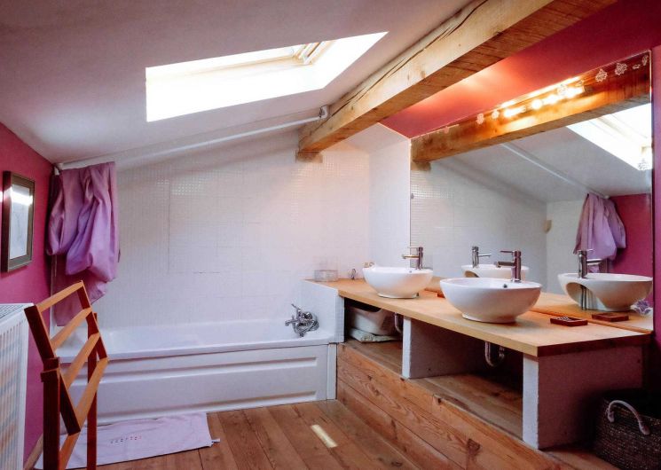 – Deuxième étage sous pente : espace jeux pour les enfants, salle de bains.