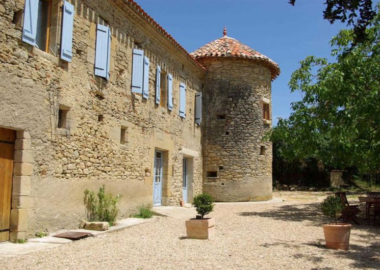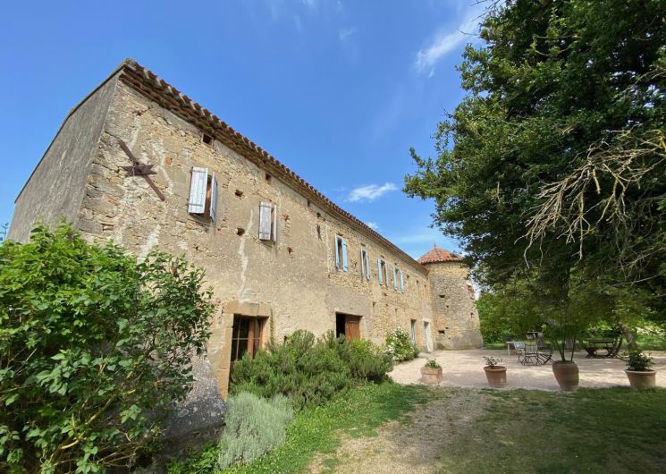 Grand gîte de charme aménagé dans une maison forte lauragaise aux murs de pierre et aux volets pastel, tour du XVème siècle. Piscine privée, tarifs tout compris !
