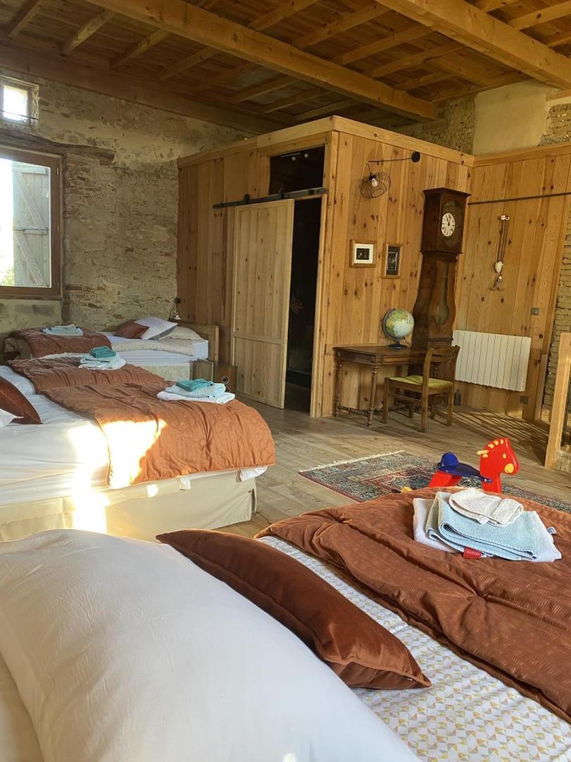 – Accessibles par l’escalier principal depuis l’entrée : grand salon (cheminée), 4 chambres (1 lit 2 personnes en 160cm dans la tour) (1 lit 2 personnes en 160cm) (1 lit 2 personnes en 160cm) (2 lits 1 personne en 90cm), salle de bains, WC.