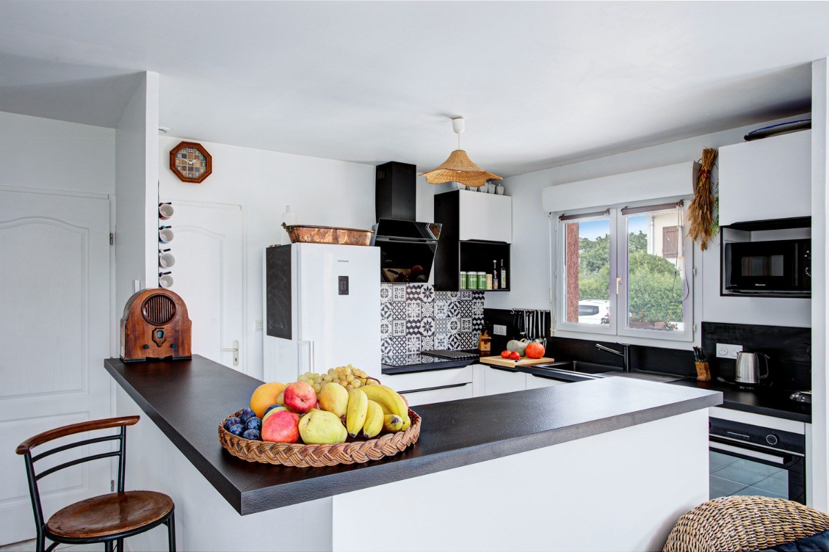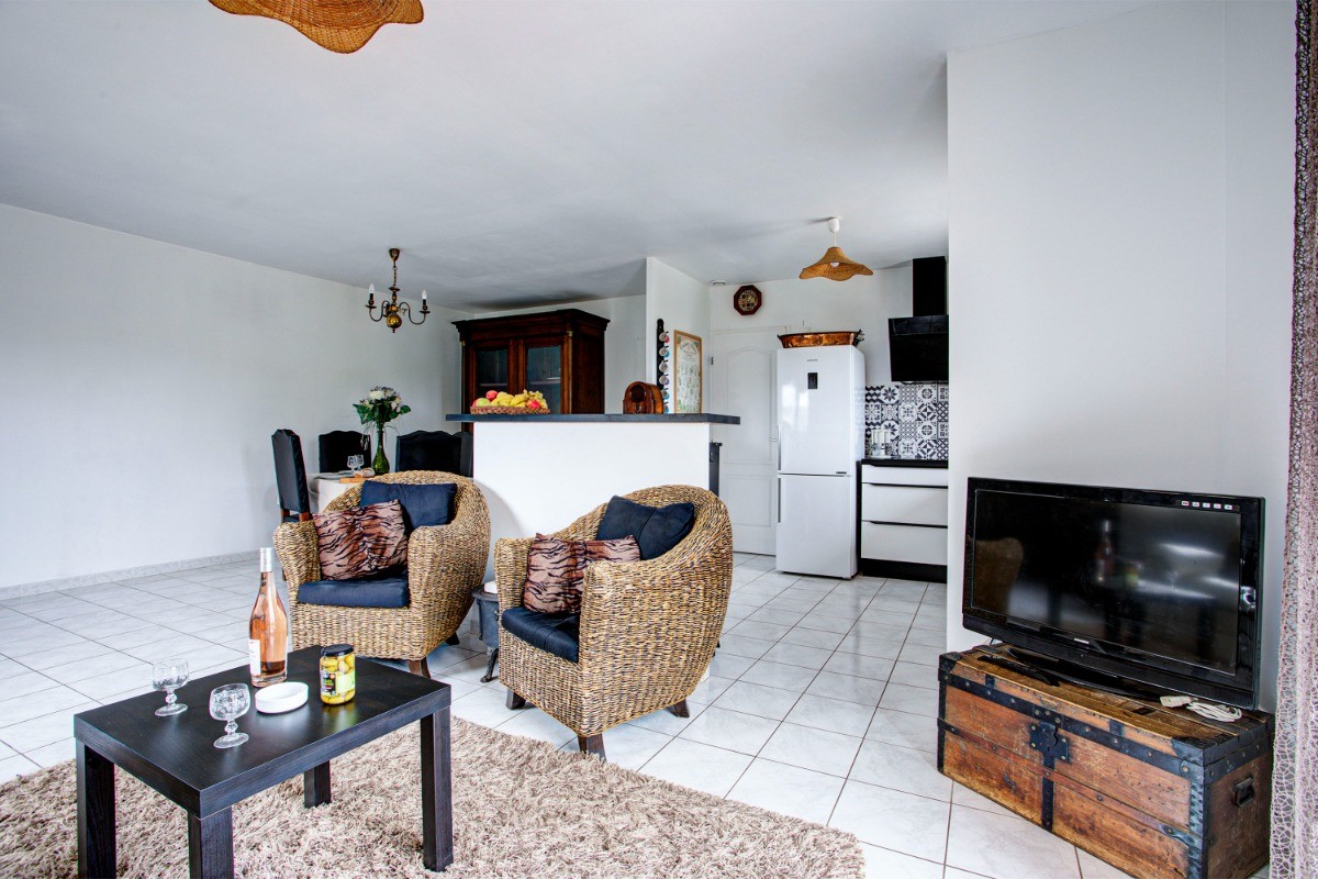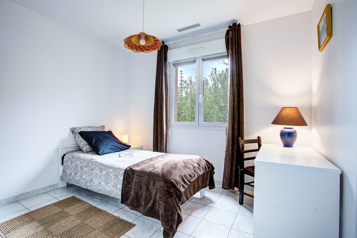 Découvrez cette charmante maison de vacances située dans le pittoresque village de Montady, proche de Béziers, le Canal du Midi et la Méditerranée. La villa est classée 3 étoiles et ouverte toute l’année. La villa de 105 m² est climatisée en saison estivale et chauffée en période froide, afin de vous apporter un confort optimal. Vous y trouverez : – Un grand séjour agréable et parfait pour se détendre avec son coin salon avec télévision et accès wifi, son canapé confortable en cuir et ses 2 fauteuils en rotin + son espace repas et la cuisine ouverte, équipée et récente (plaques à induction 3 feux, hotte aspirante, four et micro-ondes, cafetière Senseo et à filtre, bouilloire, grille-pain,…). Tout pour cuisiner comme à la maison ! – 3 chambres, dont 2 chambres avec lits en 90 cm et une 3e chambre avec un lit en 140 cm. Chacune des chambres est équipée de rangements, d’un petit bureau, d’un chevet avec lampe de chevet. La chambre avec le lit en 140 cm donne également accès à une terrasse privée. – une salle de bain moderne avec baignoire et douche dans la baignoire, – des toilettes spacieuses séparées avec petit lavabo. – à l’extérieur, vous pourrez profiter d’un jardin clôturé pour détente ou jeux, de deux terrasses dont une, exposée plein Sud offre un salon de détente et plancha, idéale pour les moments de détente et/ou de convivialité. Imaginez vous, à l’heure de l’apéro, confortablement installé, entouré de végétation en sirotant votre apéro tous en préparant vos grillades sur la plancha. La deuxième terrasse exposée Est/Ouest avec table et 4 chaises pour les repas pris en extérieur. Des chaises longues sont à disposition pour prendre le soleil ou lire un livre à l’ombre de la végétation. Dans le jardin la végétation est omni présente. vous y trouverez des lauriers roses, des figuiers, un pêcher, des ceps de vigne, un cerisier, des arbustes de ciste, de sauge, d’hibiscus ainsi que des sauges, des marguerites du cap et des agapanthes. – un garage de 15 m² pour vélos et matériel sportif. Il est possible de garer une petite voiture comme Fiat 500, Aygo, Smart dans le garage, mais une voiture plus grande empêcherai l’accès au lave-linge et à vos équipements sportifs. – Place de parking privée à l’intérieur du jardin clôturé. Cette place se situe entre la porte du garage et le portail et permet de garer une voiture d’un longueur maximal de 4m85. Informations complémentaires : * La villa est de plein pied, mais il y a 2 marches pour accéder à la villa (une marche entre le jardin et la terrasse et ensuite une marche entre la terrasse et l’entrée de la maison). En raison de la présence de ces marches, notre hébergement n’est pas accessible aux personnes à mobilité réduite. * Villa équipée d’une pompe à chaleur offrant donc une climatisation efficace en été et un chauffage agréable en période froide. Le chauffage est préréglé à 19 °C dans le séjour et en accord avec les consignes gouvernementales dans les chambres. * Ménage en option : 65 € (ménage à 45 € en hiver hors période de vacances scolaires). * Cyclistes bienvenus : garage fermé, matériel de base pour réparations, et pistes cyclables à proximité, cartes vélo à disposition. * Dans la villa vous trouverez mes bonnes adresses pour les commerces, les restaurants, les sorties. Egalement des informations touristiques pour grand et petit. * Soucieux de vous proposer un logement écologique, les plantations dans le jardin sont adaptées au climat chaud et sec afin de nécessiter très peu d’arrosages. Les directives pour vous aider à trier efficacement vos déchets sont affichés, un composteur complète ce dispositif. * Vous trouverez un accès aux transport en commun à proximité, mais il est cependant préférable d’avoir une voiture afin de profiter au maximum des sorties, plages dans les environs. *A cause des marches entre la villa et la terrasse et la de la terrasse au jardin nous déconseillons le séjour avec des enfants de moins de 4 ans. Ca vous demandera une surveillance de tout instant quand l’enfant est dehors, ca ne sera pas très reposant. Vous trouverez une borne de recharge pour voiture électriques au centre du village de Montady. Il n’est pas autorisé de recharger une voiture électrique à la villa. Réservez dès maintenant pour un séjour agréable en toute saison !