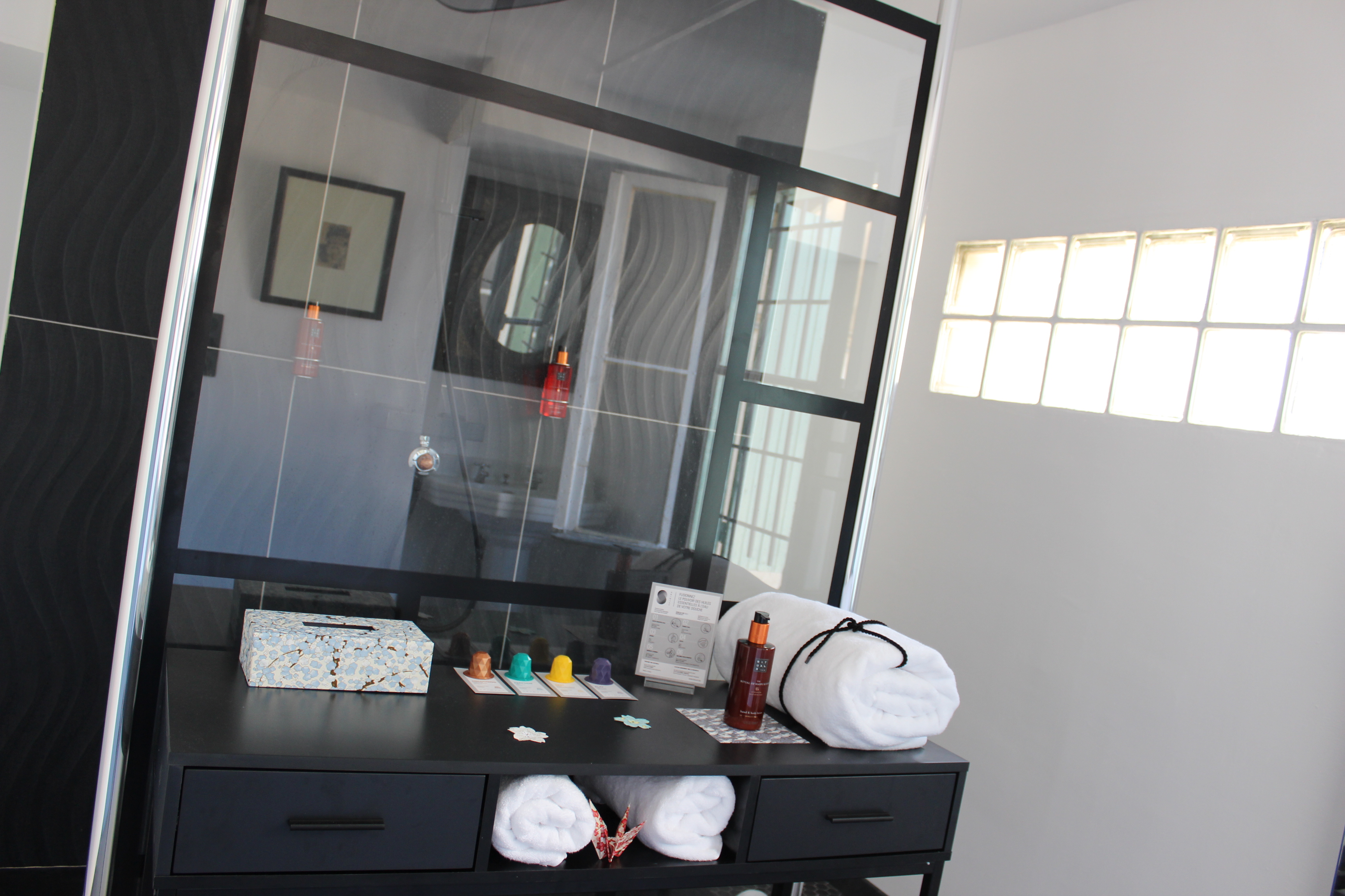 Une chambre de 31m² de superficie avec son petit jardin semi-privé et salle de bain, douche à l’italienne, wc privé, un havre de paix au décor sobre et intimiste.