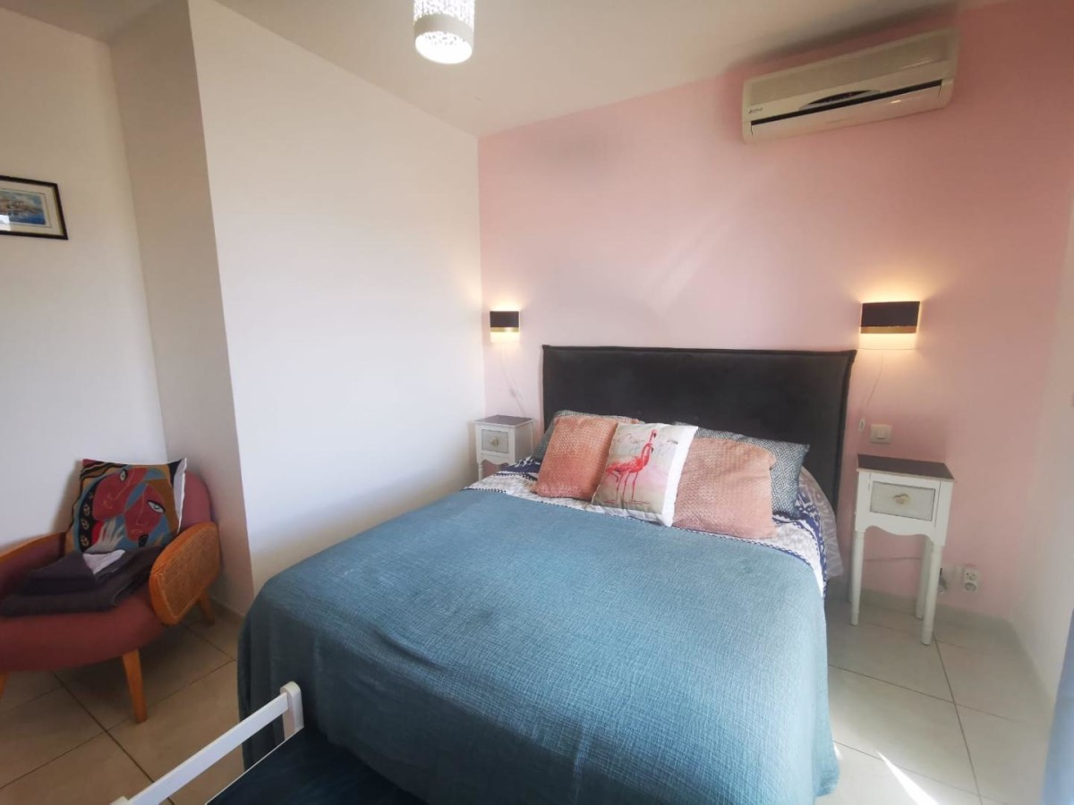 Cette chambre comprend un lit en 140X190, climatisation et TV ouvrant sur une petite terrasse avec vue dégagée sur le massif de la Gardiole. (Possibilité de louer la seconde chambre avec également un lit en 140X190 et climatisation, sur demande auprès des propriétaires. Dans ce cas, la salle d’eau est commune aux deux chambres). Accès WIFI. Service petit déjeuner au rez-de-chaussée de la villa, dans le séjour. Terrain clos de 500m² en commun avec les propriétaires et un gîte, offrant plusieurs équipements: bains de soleil, spa thérapeutique (Spa: 10€ la séance par personne, 1 séance offerte pour tout séjour de 3 nuits et plus). ATTRAITS TOURISTIQUES : Sète (port de pêche et de commerce, terre natale de G. Brassens et P. Valéry), bassin de Thau, Bouzigues (ostréiculture), Mèze (station de lagunage), Frontignan (vin muscat), les plages. – Chambre double, douche, WC,